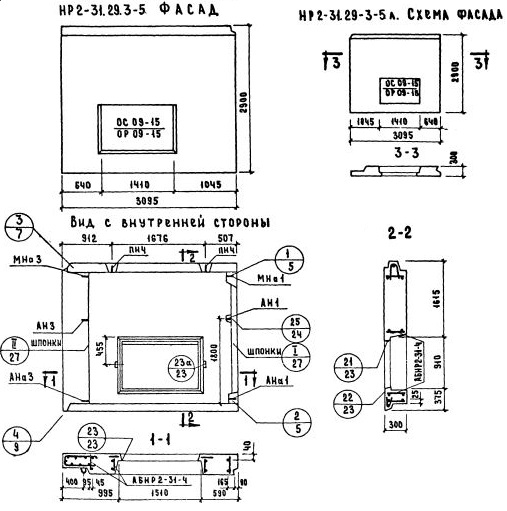 НР2-31.29.3-5л   Наружная стеновая панель рядовая по Серии 1.132-1.
