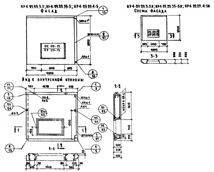НР4-29.29.3-5л   Наружная стеновая панель рядовая по Серии 1.132-1.