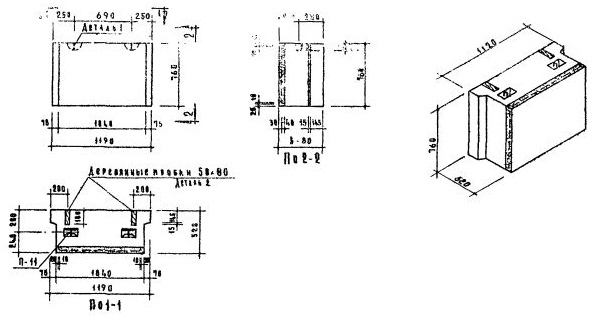 Стеновые легкобетонные блоки толщиной 60 см по Серии 1.133-1.